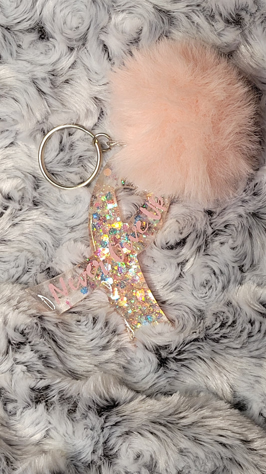 Cancer Awareness - Never Give Up Pink Ribbon Keychain